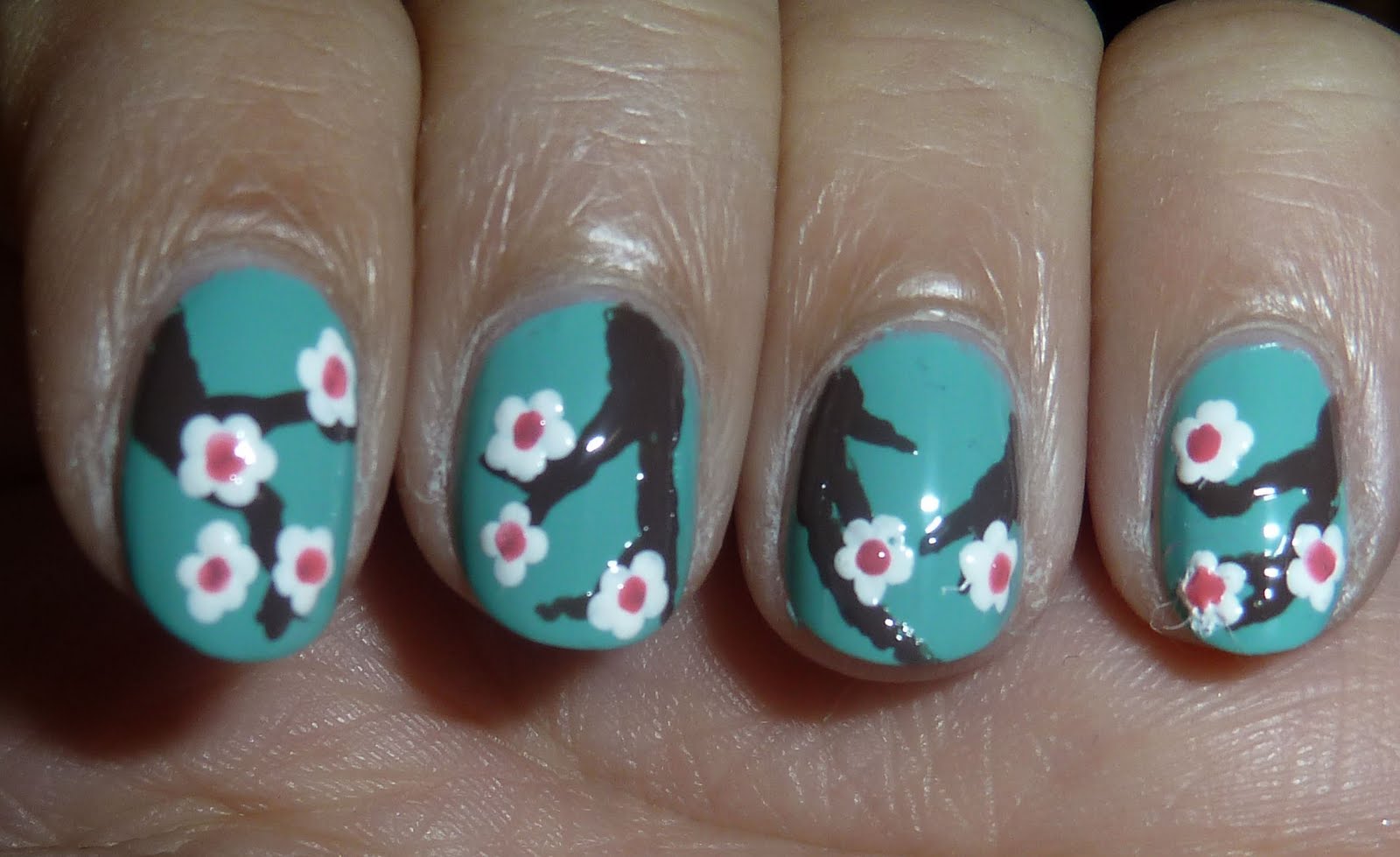 Step 6; You just finished all the step to make the cherry blossom nail art. All you need to do now is to put a top coat on top to seal your nail art and make it last longer.