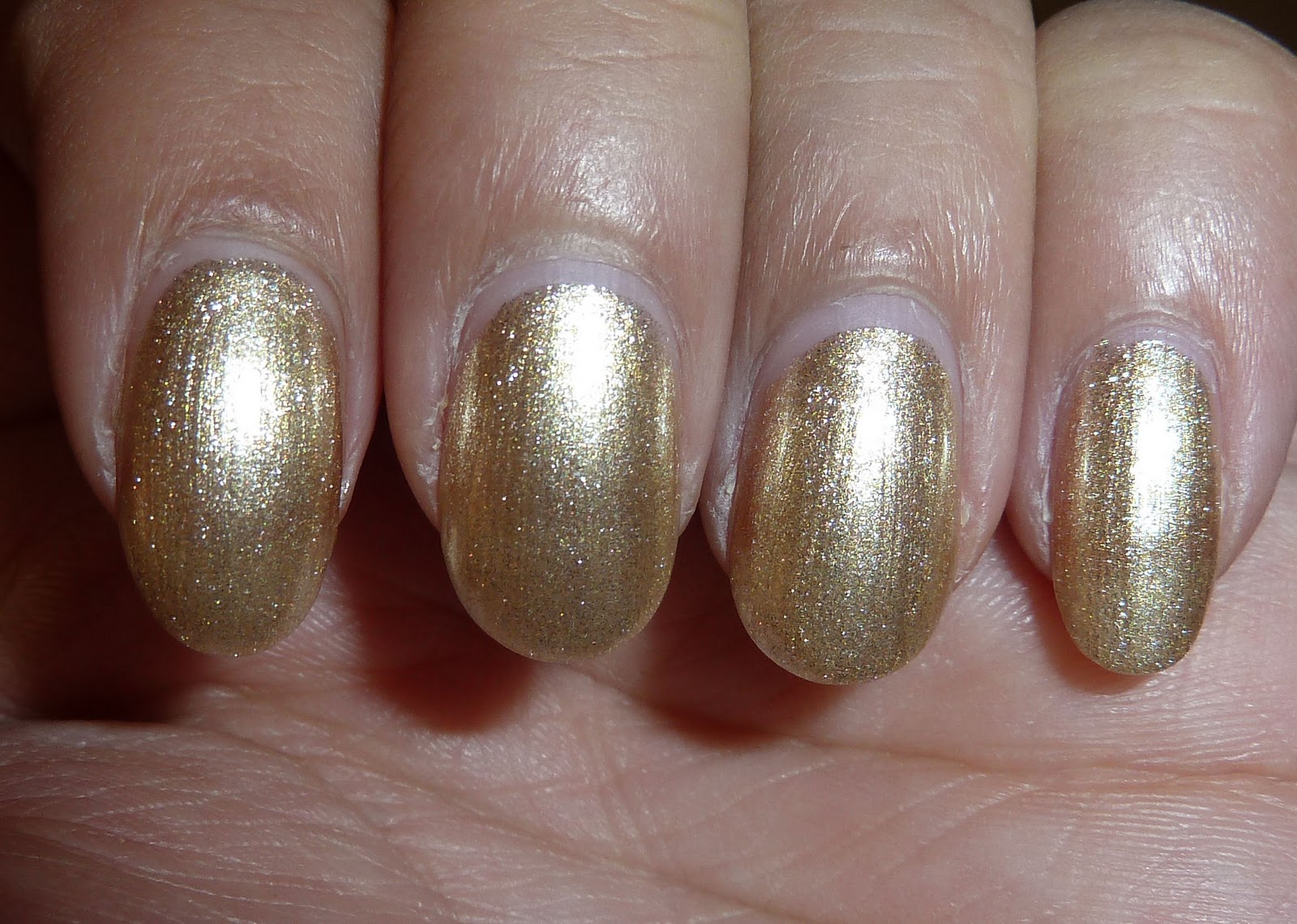 The two pictures above are my nails with Goldfinger from Catrice. This is a polish I recently purchased, it's one of the new fall polishes from Catrice. The polish is very warm toned and the texture is finer than the gold nail polish from GOSH.